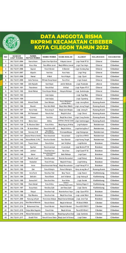 Data Lengkap Risma Kec. Cilegon